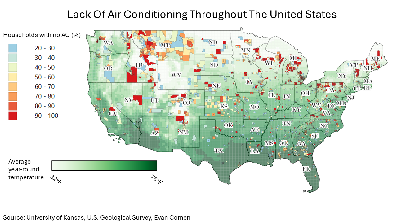 As the U.S. endures record-breaking heat year after year, millions of Americans still live in homes without air conditioning. Public health researchers increasingly describe AC access as one of the most effective defenses against extreme heat, especially for older adults, low-income households, and people living in poorly insulated or aging homes. Until recently, scientists lacked reliable, granular data on which Americans actually own AC.